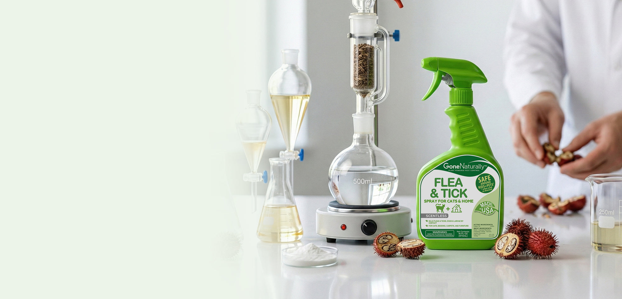 GoneNaturally is lab-tested to kill adults, eggs, and larvae on contact – protecting your pets and your home with a single, scentless formula.